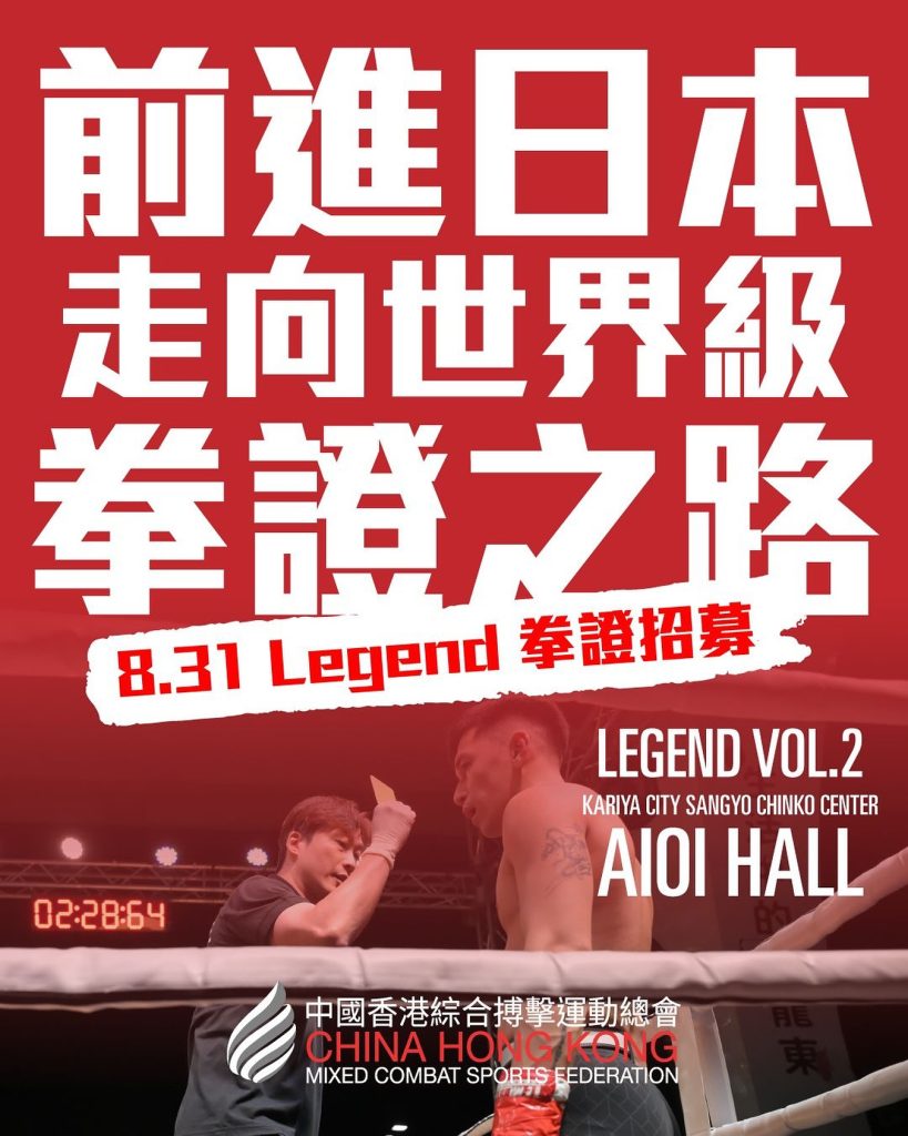 日本【Legend】 8月31日賽事 「港日大戰」將開放香港拳證參與,並與Legend共同合作拳證工作,立即查詢與我們一起前進日本🔥